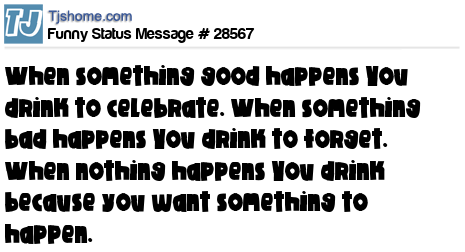 X When something good happens You drink to celebrate. When something bad happens You drink to forget. When nothing happens You drink because you want something to happen.
