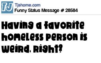 X is Having a favorite homeless person is weird, right?