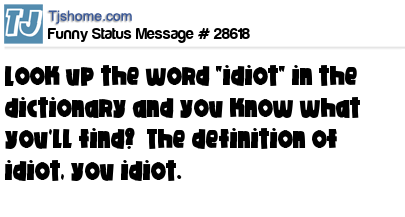 X is Look up the word "idiot" in the dictionary and you know what you'll find? The definition of idiot, you idiot.