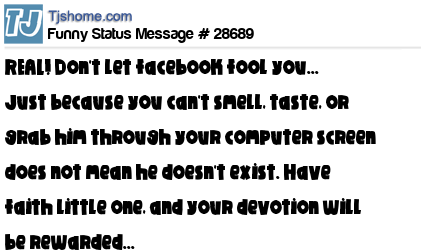 X is REAL! Don't let facebook fool you... Just because you can't smell, taste, or grab him through your computer screen does not mean he doesn't exist. Have faith little one, and your devotion will be rewarded...