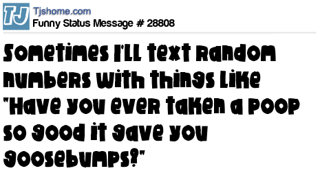 X Sometimes I'll text random numbers with things like "Have you ever taken a poop so good it gave you goosebumps?"
