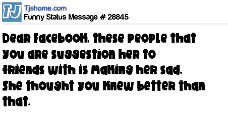 X  Dear Facebook, these people that you are suggestion her to friends with is making her sad. She thought you knew better than that.