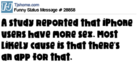 X A study reported that iPhone users have more sex. Most likely cause is that there's an app for that.