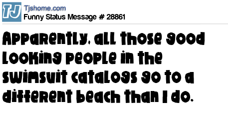 X says Apparently, all those good looking people in the swimsuit catalogs go to a different beach than I do.