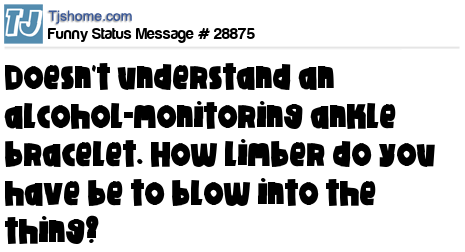 X Doesn't understand an alcohol-monitoring ankle bracelet. How limber do you have be to blow into the thing?