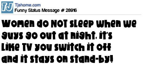 X says Women do NOT sleep when we guys go out at night, it's like TV you switch it off and it stays on stand-by!