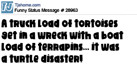 X A truck load of tortoises get in a wreck with a boat load of terrapins... it was a turtle disaster!
