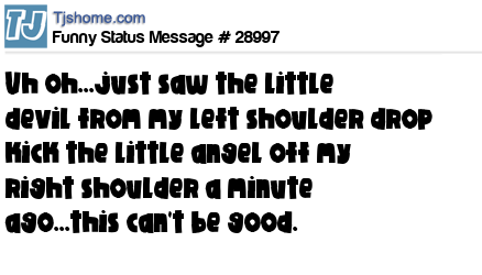 X says Uh oh...just saw the little devil from my left shoulder drop kick the little angel off my right shoulder a minute ago...this can't be good.