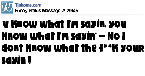 - # 74178 When someone asks "Know what I'm sayin'?" simply recall the thing they JUST SAID & you can "know what they're sayin'."