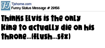 X thinks Elvis is the only King to actually die on his throne...(flush...sfx)