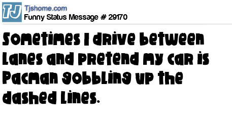 X Sometimes I drive between lanes and pretend my car is Pacman gobbling up the dashed lines.