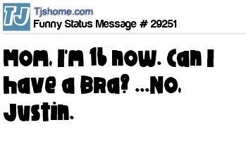 X Mom, I'm 16 now. Can I have a Bra? ...No, Justin.
