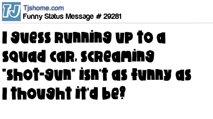 X says I guess running up to a squad car, screaming "shot-gun" isn't as funny as I thought it'd be?