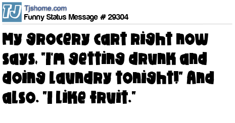 X My grocery cart right now says, "I'm getting drunk and doing laundry tonight!" And also. "I like fruit."