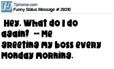 X “Hey. What do I do again?” -- Me greeting my boss every Monday morning.