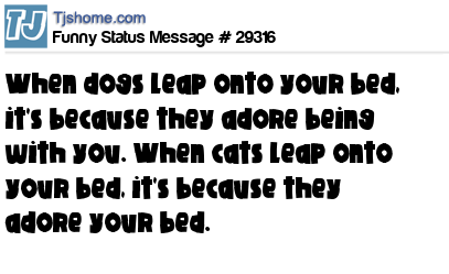- # 29272 When dogs leap onto your bed,it's because they adore being with you. When cats leap onto your bed,it's because they adore your bed.