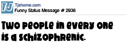 - # 71307 It's difficult to have a committed relationship with a schizophrenic. They're always seeing other people.