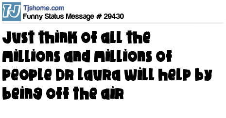 X Just think of all the millions and millions of people Dr Laura will help by being off the air
