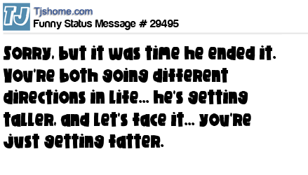 X Sorry, but it was time he ended it. You're both going different directions in life... he's getting taller, and let's face it... you're just getting fatter.