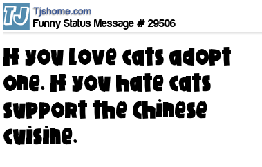 X is If you love cats adopt one. If you hate cats support the Chinese cuisine.