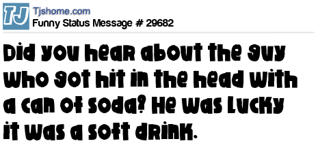 X  Did you hear about the guy who got hit in the head with a can of soda? He was lucky it was a soft drink.
