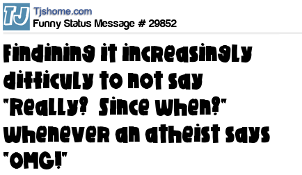 X is findining it increasingly difficuly to not say "Really? Since when?" whenever an atheist says "OMG!"