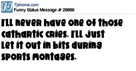 X I'll never have one of those cathartic cries. I'll just let it out in bits during sports montages.