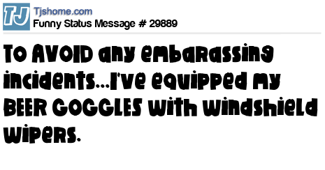 X says to AVOID any embarassing incidents...I've equipped my BEER GOGGLES with windshield wipers.