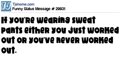 - # 30002 If you're wearing sweat pants either you just worked out or you've never worked out.
