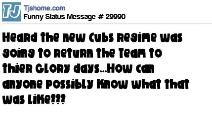 X is heard the new Cubs regime was going to return the Team to thier Glory days...How can anyone possibly know what that was like???