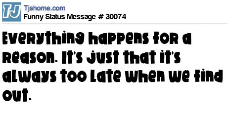 X says Everything happens for a reason. It's just that it's always too late when we find out.