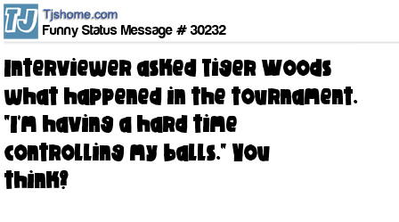 X Interviewer asked Tiger Woods what happened in the tournament. "I'm having a hard time controlling my balls." You think?