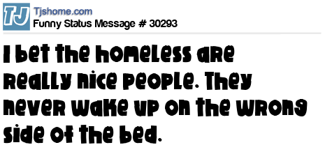X I bet the homeless are really nice people. They never wake up on the wrong side of the bed.