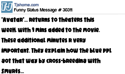- # 79349 If pocahontas and the smurfs had babies, the result would be avatar...think about it