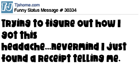 X is Trying to figure out how I got this headache...nevermind I just found a receipt telling me.