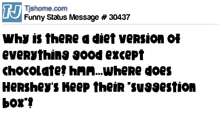 X says why is there a diet version of everything good except chocolate? hmm...where does Hershey's keep their "suggestion box"?