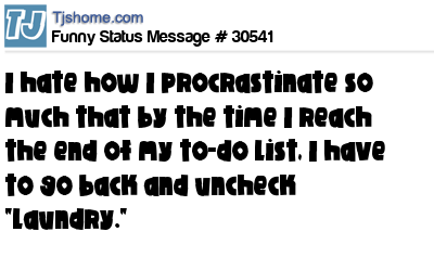 X I hate how I procrastinate so much that by the time I reach the end of my to-do list, I have to go back and uncheck "laundry."