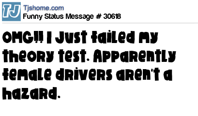 X  OMG!! I Just failed my theory test. Apparently female drivers aren't a hazard.