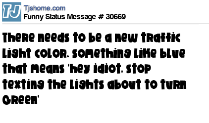 X is there needs to be a new traffic light color. something like blue that means 'hey idiot, stop texting the lights about to turn Green'
