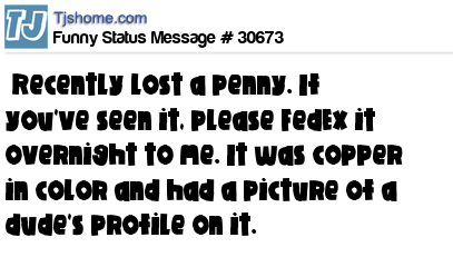 X has Recently lost a penny. If you've seen it, please FedEx it overnight to me. It was copper in color and had a picture of a dude's profile on it.