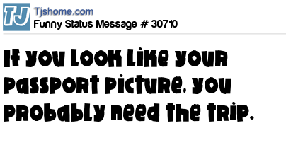 - # 46893 FYI: If you look like your passport picture, you probably need the trip.