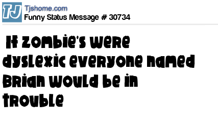 - # 181297 When the zombies come, my plan is to hope they are all dyslexic and go after the Brians