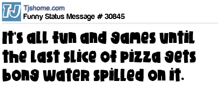 - # 101390 It's all fun and games untill someone spills bong water on the last slice of pizza!