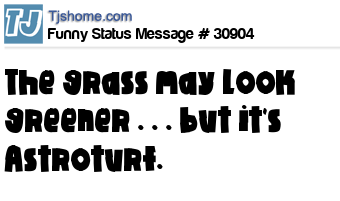 - # 36843 The old saying "The grass is always greener on the other side of the fence"....is it? Or maybe you just need to get up off UR lazy ass and mow the lawn, water it, pull some weeds, fertilize it, take care of your own grass and stop looking over the fence