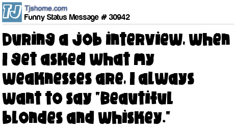 X During a job interview, when I get asked what my weaknesses are, I always want to say "Beautiful blondes and whiskey."