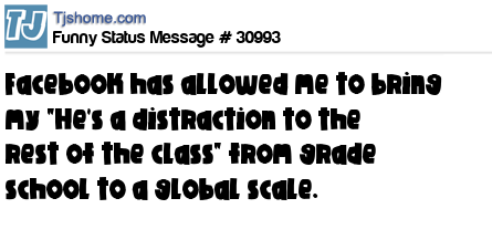 - # 70439 Facebook has allowed me to bring my "He's a distraction to the rest of the class" from grade school to a global scale!!