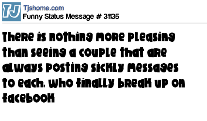 - # 51937 • There is nothing more pleasing than seeing a couple that are always posting sickly messages to each, finally break up on facebook.