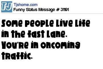 - # 31379 Some people live life in the fast lane. I have decided that I live it in oncoming traffic at night with no lights on. Welcome to my world, buckle up.