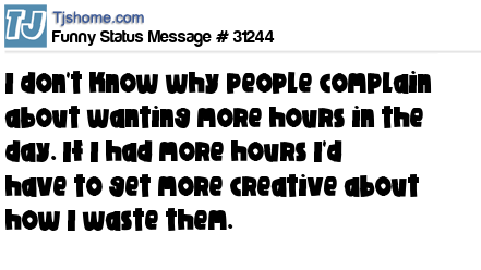 X I don't know why people complain about wanting more hours in the day. If I had more hours I'd have to get more creative about how I waste them.