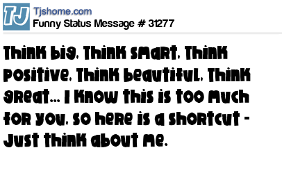 - # 20949 Think Big. Think Positive. Think Smart. Think Beautiful. Think Great. I know,that's too much for you, so here is a shortcut. JUST THINK ABOUT ME!